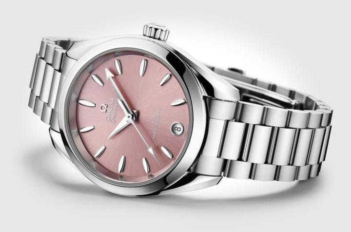 在面盘细节的差异外,此次欧米茄替34mm款开发出包括海蓝、潟湖绿、砂岩、贝壳粉和薰衣草色等五种颜色,至于38mm款也有大西洋蓝、海湾绿、砂岩色、赤土色和藏红花色等,透过缤纷的色调赋予每款Aqua Terra同中求异的个性,这些彩色面盘皆是在黄铜面盘镀上颜色,并进行太阳放射纹处理,使得这些彩色面盘随着不同角度变换以及光线照射下,会形成色泽深浅的丰富视觉层次,突显彩色引人入胜的魅力。
