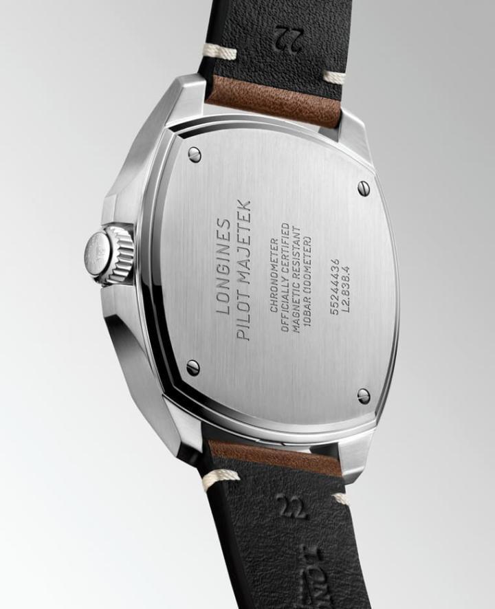 原版的Pilot Majetek具备弯曲枕型表壳,浪琴表当年曾在瑞士伯恩国际工业财产局完成专利注册,因此这种特殊的表壳造型实际上也具有浓浓的品牌原创性质。浪琴表之所以会采用如此有个性的外观,乃是为了满足飞行员所需的条件,包括可靠、坚固、精准与易读性等。2023年重生的Pilot Majetek经典复刻飞行表一方面捕捉原版的造型精髓,同时也适度微调比例、改换饰更圆润的表冠,让手表不会单纯像是搭乘时光机来到现代,而能加入一些今日的设计观点,展现与时俱进的精神。