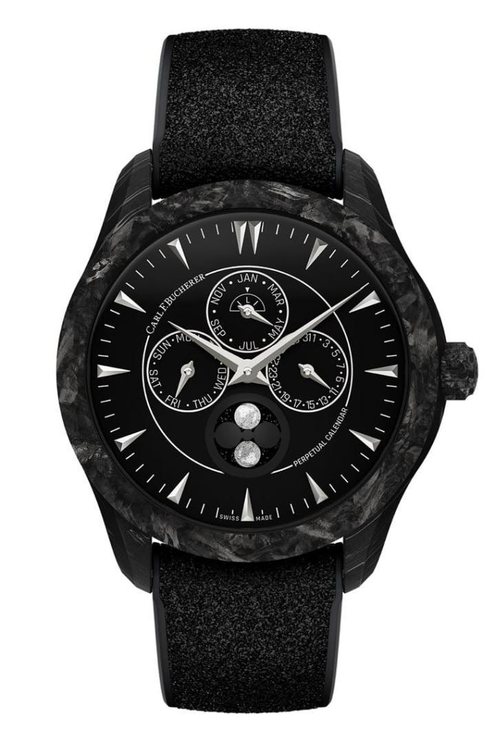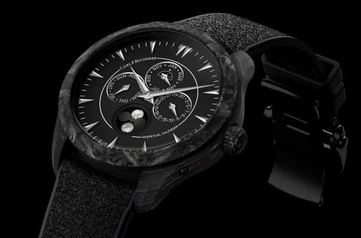 综观宝齐莱庆祝135周年的Capsule系列,除了拥有全黑色调这个共同特征,它们也还有一些相近的细节,例如黑色系的混合橡胶表带,而且全部都配置表带快拆系统,而且系列中的每款表也都具备复杂功能,宝齐莱更趁著推出这个别具意义的手表系列,破天荒引进锻造碳制作其中部分表款的外壳,让市场可以发现宝齐莱制表更为摩登现代的一面,以下便来一一认识Capsule系列的成员。
