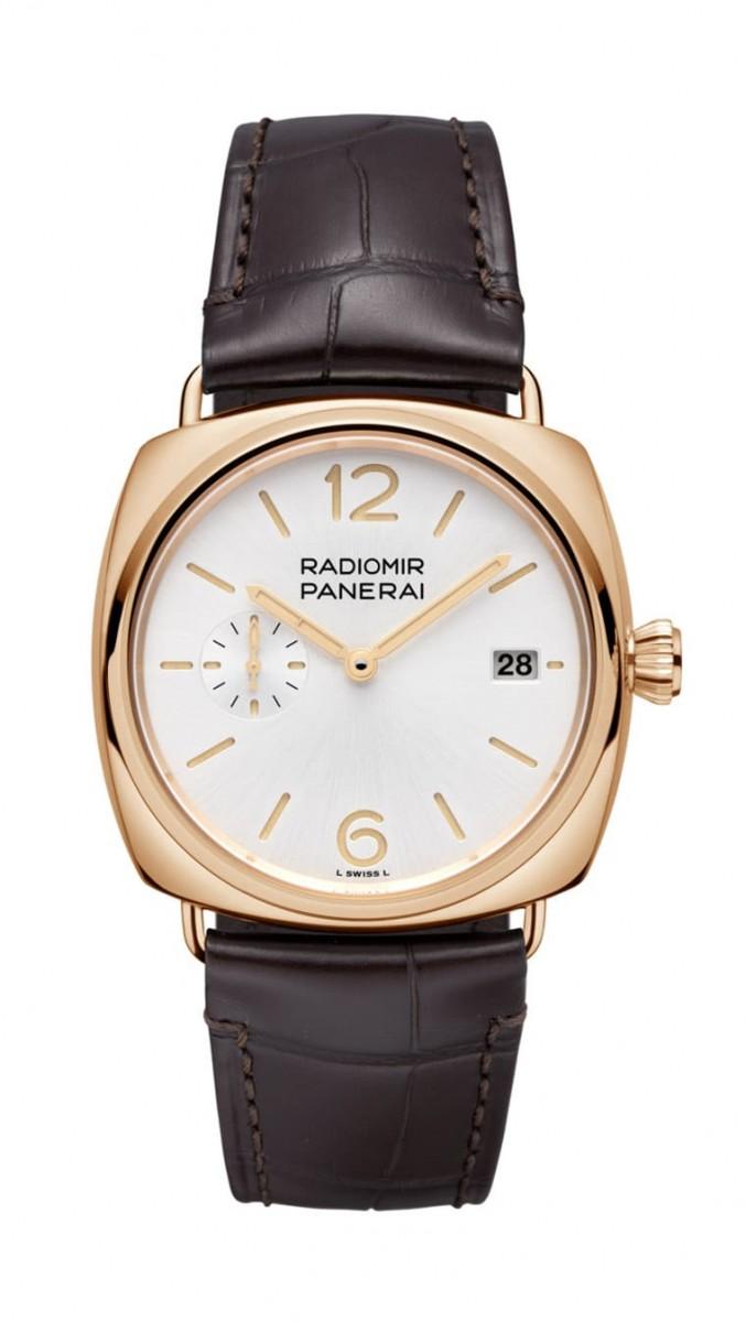 前述的Radiomir新品都采用45mm大表径,以现代标准而言不见得符合部分市场(尤其是表主手腕通常较细的亚洲)的需求,因此品牌特别于系列创造出表径40mm的Goldtech™红金款小三针PAM01026,它有点像是Radiomir的Luminor Due般,因为除了表径更小、表壳也更加轻薄,表主可以替手表选择小牛皮、鳄鱼皮等不同材质与颜色的表带,颠覆过往我们对Radiomir系列较为沉稳保守的印象。
