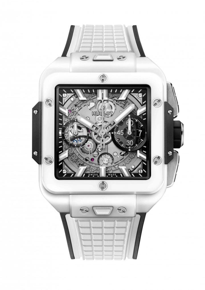 Square Bang Unico计时码表系列刚出道时即拥有钛金属、皇金、钛金属加陶瓷、皇金加陶瓷以及黑色陶瓷共五种表壳版本,2023年宇舶进一步加入蓝宝石水晶材质,还有白色陶瓷与黑色陶瓷各一,透过这两种品牌近年研发得很有心得的科技材质,赋予手表同中求异的新意。