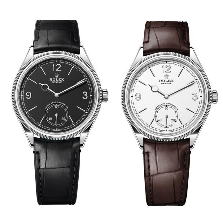 首批发表的1908系列依旧延续只用贵金属材质的策略,劳力士分别推出18K黄金与18K白金两种款式,并各有黑面与白面共四款。1908系列的表壳尺寸与Cellini一样都是39mm,甚至连它的表圈也和Cellini系列带有似曾相识的味道——外侧为三角坑纹、内侧则是抛光得晶亮的圆拱形。劳力士以品牌首批配备恒动自动盘的手表作品为蓝本,因此即使表壳造型、搭配皮表带等方面与Cellini系列相较之下,变化程度都有限,但是面盘的设计很容易就能区隔出两个系列的独特个性。