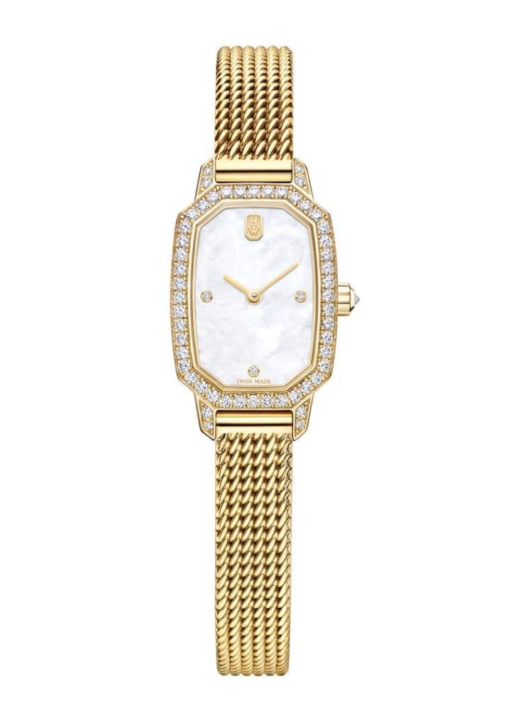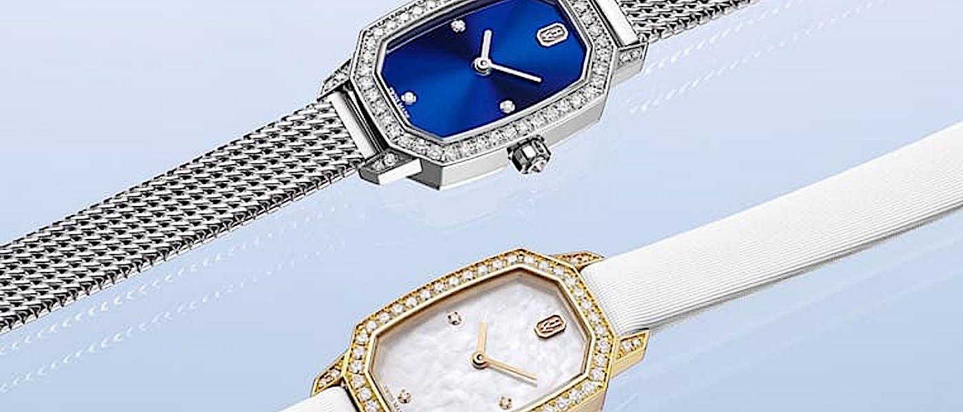 印记Emerald腕表系列的两种尺寸各自采用不同的表壳打造工艺,其中小型的版本(24x17.75mm)拥有镶钻表圈设计,而大型的版本(39.3x33.3mm)则以斜面雕琢表壳呈现更立体化的风格,而且大型版本同样也有表圈镶钻的款式可选。至于小型版本此次首度引进18K黄金材质,赋予腕表崭新视觉感受。