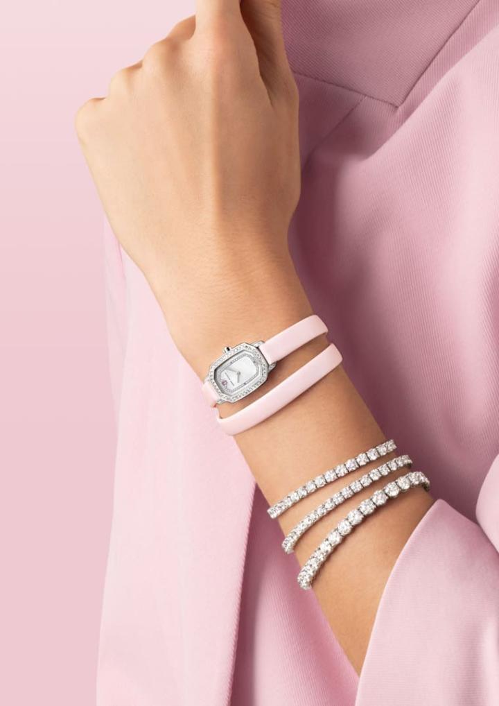印记Emerald腕表系列以八边形表壳造型为招牌特色,经典风格中额外洋溢一股现代气息。该系列款式众多,包括不同尺寸的表壳,色彩各异的面盘与多种材质的表带,例如白金、玫瑰金、黄金等,尺寸则有39.3x33.3mm和24x17.75mm等两种,表带更是变化多端,从金属炼带、缎质表带、鳄鱼皮表带一应俱全,多元化的设计让系列作品展现同中求异的丰富个性。
