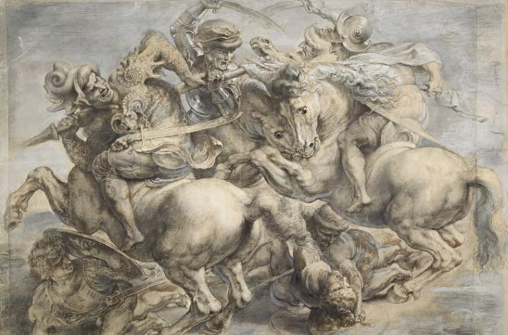 《安吉亚里之战》据说是文艺复兴时期巨匠达文西原创的壁画作品,当时他接受委托在佛罗伦斯领主宫(后称“旧宫”)大会议厅创作这幅壁画,但到了16世纪中期塔斯卡尼大公科西莫一世(Duke Cosimo I)授意另一位名画家瓦萨里(Giorgio Vasari)重新替旧宫大会议厅绘制壁画,使得达文西原本创作的《安吉亚里之战》就此淹没在历史洪流中。结果17世纪初鲁本斯因缘际会在意大利幸运买到一份《安吉亚里之战》的素描稿,他为了向这幅传说中的名画致敬,因此使用墨水、晕染溶剂和水粉颜料帮素描稿上色,这幅画作流传至今被珍藏在罗浮宫中,而那名得标的收藏家,或许是受到《安吉亚里之战》画面中战争场景张力的吸引,决定将画作的视觉震撼力移植到手表面盘上,接下来便是江诗丹顿旗下珐瑯大师大展身手的时刻。