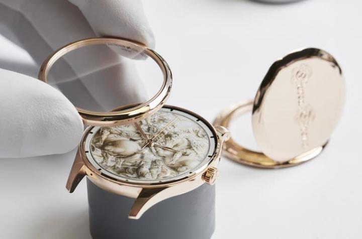江诗丹顿是从2019年开始和法国罗浮宫建立合作关系,实际上当2016年罗浮宫在修复“创世纪”座钟(La Création du Monde)时,江诗丹顿就已经开始在背后支持罗浮宫,所以双方隔了几年之后便正式开始携手。2020年底罗浮宫曾举办一场“以罗浮宫之名(Bid For the Louvre)”线上拍卖会,目的是要为共济社会教育专案筹措善款,身为合作伙伴的江诗丹顿也大方捐献了一只手表共襄盛举,不过这只表特别的是在拍卖当时它还是一个未知数,其实品牌就是在这时与罗浮宫提出了“将艺术杰作佩戴于腕间”共创专案,竞标的收藏家们并非直接买下一只表,而是会先受邀参观罗浮宫以及江诗丹顿的总部,接着得标的收藏家会与双方开会讨论手表面盘要选定哪件艺术作品为蓝本,最终答案便是鲁本斯的《安吉亚里之战》雀屏中选。