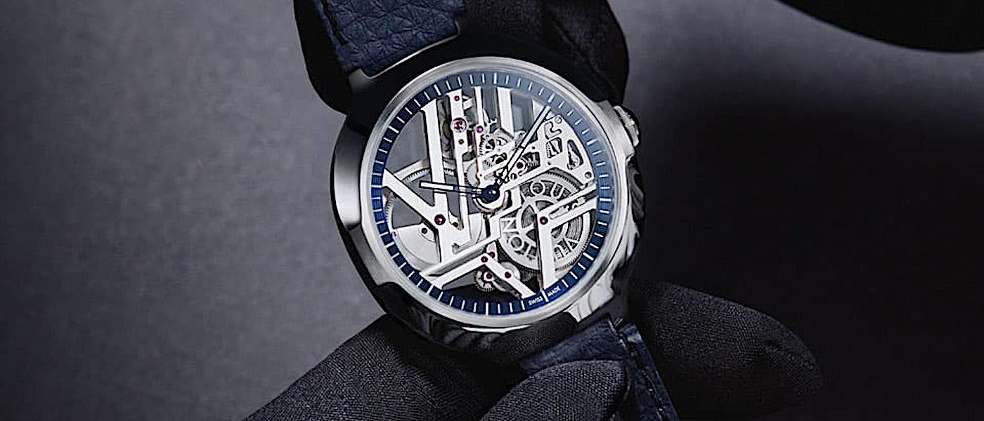 Voyager Skeleton腕表由La Fabrique du Temps Louis Vuitton制表工厂负责设计开发, 以纯度达95%的铂金打造似圆似方的Voyager表壳,宽度41mm,对角线长度43.7mm,采用单体结构,让表壳中部和表圈合而为一,波浪状曲线和对比鲜明的表面做工表现了工艺难度,深蓝色的分钟环包围着机械零件,搭配两根蓝色指针,更显质感非凡。