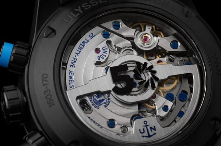 表款拥有潜水表等级的300米防水深度,且其还能采用透明底盖露出手表搭载的UN-150计时机芯,这枚机芯由318枚零件组成,底盖正中央印有醒目的“50”数字,代表庆祝世界环球帆船赛50周年之意,机芯蕴含硅质擒纵轮、擒纵叉及摆轮游丝,有助于提升手表的走时精准度,其动力储存48小时则属一般水准,只要持续佩戴手表,就能持续替手表补充动能,不需过于担心动力不足的问题。