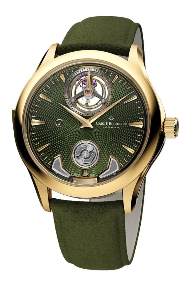 18K黄金材质/CFB MR3000自动上炼机芯/时、分、小秒显示/三问功能/陀飞轮装置/机刻面盘/蓝宝石水晶镜面、透明底盖/防水10米/表径43.8mm/限量1只