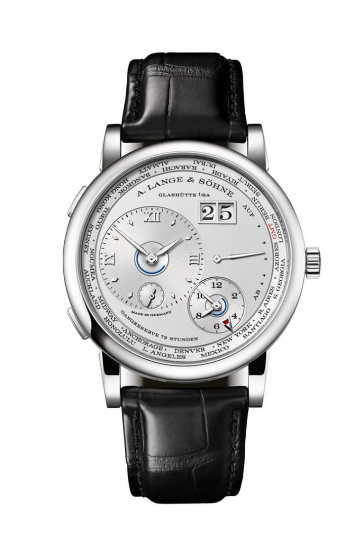 950铂金材质/L141.1手动上炼机芯/偏心时、偏心分、小秒、大日期显示/两地时间显示/动力储存显示/日夜显示/夏令时间显示/蓝宝石水晶镜面、透明底盖/表径41.9mm