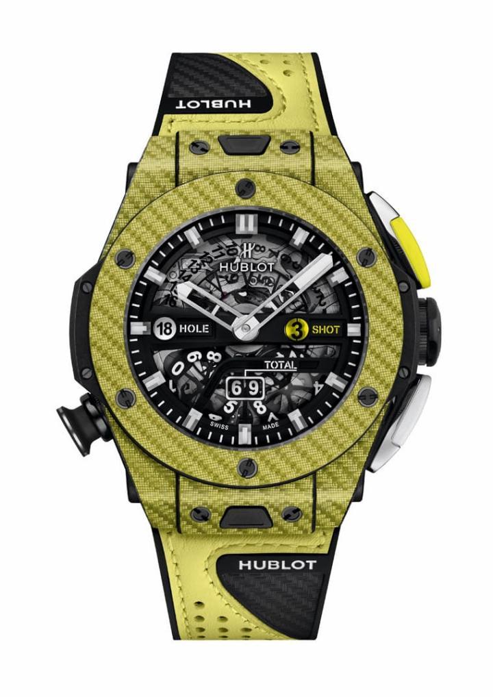 回顾宇舶和达斯汀强生多年的合作关系,品牌在2017年开始为了这位品牌大使专程设计出Big Bang Unico Golf高尔夫手表,以机械结构呈现高尔夫球运动进行时相关的重要资讯令人眼睛一亮,品牌先后推出过镀铝碳纤维原色和黑色,以及限量的特殊色——绿、黄、橘、深蓝款,加上今年的晴空蓝后总计多达7种颜色版本,几乎是一年出一款的频率,让达斯汀强生在2023年拿到了第7款Big Bang Unico Golf高尔夫手表,等于一周当中每天都可以戴不同颜色的Big Bang Unico Golf高尔夫手表出门,一般的收藏家就算没有包色的打算,也足以从中挑选出一款自己最爱的颜色戴着去打高尔夫了。