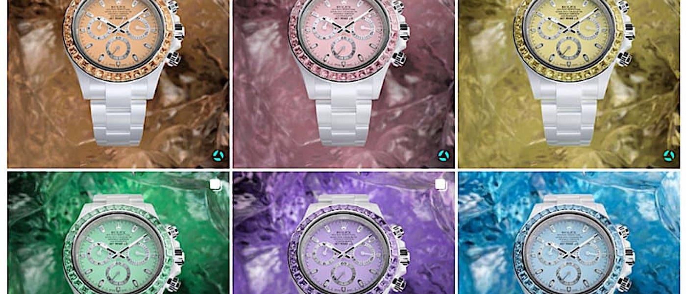 Blue Gemstone Ceramic限量发行3只,每只要价90,500欧元,价格以高级手表改装表而言不是太令人意外,但是手表仅做了3只应该会让感兴趣的收藏家觉得太少,代表他们能入手的机会不多。结果就在Blue Gemstone Ceramic发表不到一个月的时间内,AET REMOULD竟又一口气连推出了5款Genesis的系列的新表,它们分别是Purple Gemstone Ceramic、Green Gemstone Ceramic、Yellow Gemstone Ceramic、Pink Gemstone Ceramic和Orange Gemstone Ceramic,顾名思义改装表品牌依序在前述5款表的表圈各别镶上36颗紫色宝石、沙弗莱石、黄色宝石、粉红色宝石和橘色宝石。