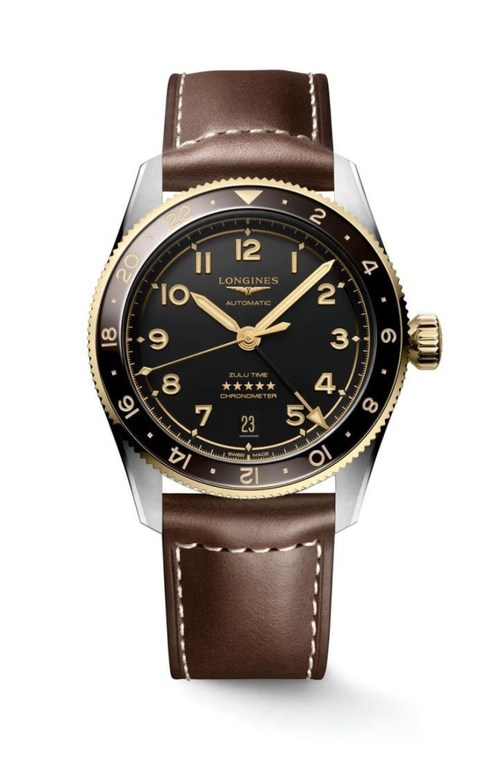 不锈钢、黄金、陶瓷材质/L844.4自动上炼机芯/时、分、秒、日期显示/两地时间显示/蓝宝石水晶镜面/防水100米/表径39mm