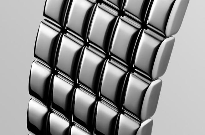 这次Mini DolceVita迷你多情系列的炼带也很值得一提,品牌总共使用198枚錬节组成炼带整体,细致的矩形錬节犹如表壳的缩影,工整地一排一排连结,营造独特的视觉特色之外,还能提供优异的佩戴舒适性,无论搭配何种面盘款式都各有千秋,散发时代女性的自信与魅力。