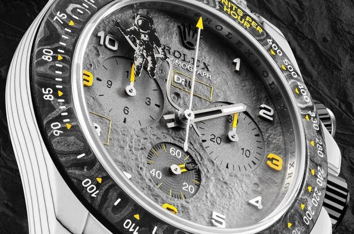 要拥有一款这么特别的Daytona代价如何呢?DiW官网开价是64,990欧元,相比同样采用石英纤维表壳搭配碳纤维表圈的Daytona改表如 Carbon Bumblebee 开价61,990欧元稍贵一些,可见面盘的创意伴随更高的制作难度,但收藏家为了追求独特性应该是很乐意再追加更多预算入手这只太空主题的Daytona。