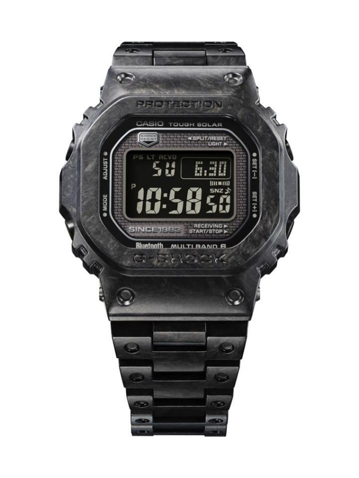这次G-SHOCK用以制作手表外观的关键元素为锻造碳,包括表圈、表带与表扣都以这种材质制作,品牌在制作过程中会把碳纤维与树脂混合放入模具,经过高温、高压锻造而成不同部位的零件。值得一提的是,GCW-B5000可是5000系列中第一个使用碳纤维强化树脂制成一体成型表壳的作品。而且G-SHOCK以打造旗舰产品的态度严格把关手表的外部零件,例如内层表圈以及表壳四周的按把是以钛金属制成,表扣的三折式零件则以立体结构的多层碳制成,使得表扣既强韧又轻盈,佩戴感受获得深度优化。