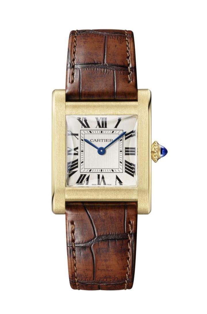 卡地亚新推出具备时、分显示功能的Tank Normale腕表,同时保留原型腕表的整体比例和斜面蓝宝石水晶镜面。品牌设计出搭配棕色鳄鱼皮表带的黄金表款和搭配黑色鳄鱼皮表带的铂金表款。卡地亚Privé系列亦开创先河,首次推出黄金链带款和铂金链带款,金属表面分别经过缎面和抛光处理相得益彰。表耳和表壳边缘则采用抛光处理,与表款整体的流畅感互相呼应。