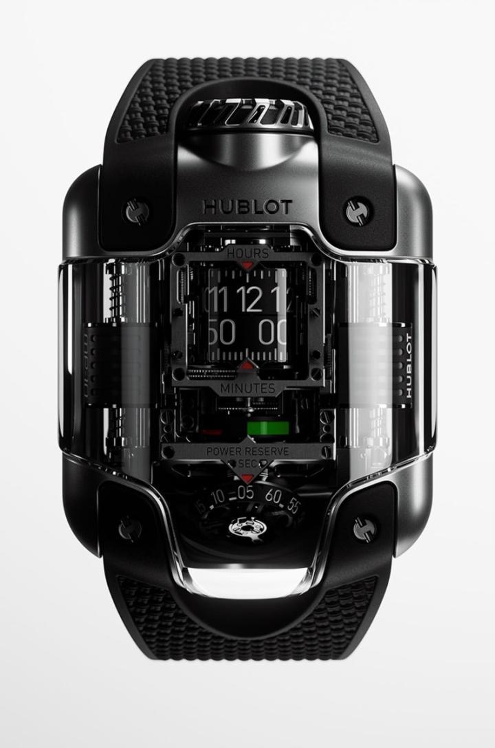 钛金属材质/HUB9013自动上炼机芯/时、分、秒显示/陀飞轮装置/动力储存显示/蓝宝石水晶镜面、透明底盖/表径51.5x41.5mm/限量50只/参考价:¥ 1,873,710