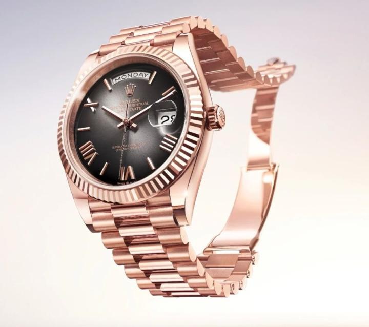 劳力士呈献新款星期日历型40与星期日历型36。新款星期日历型采用渐变色表盘、蓝绿色表盘或珠光白色珍珠母表盘,点缀组合刻面罗马数字及刻面钟点标记,配备梯形钻石外圈。其设计彰显品牌将各类珍贵及罕见工艺融入精微细节的不懈追求。