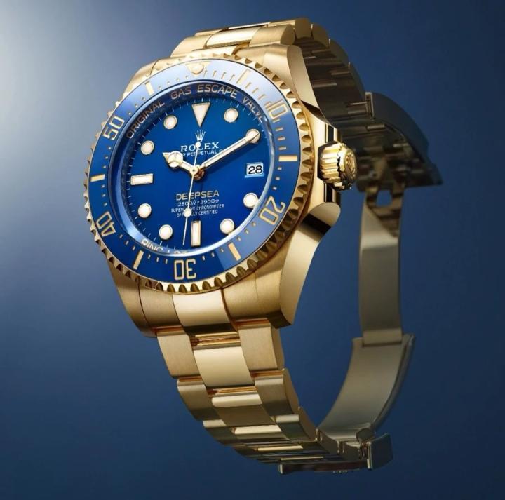 新款劳力士深潜型劳力士首款18K黄金深海潜水腕表,融合多种蓝色调,创新组合黄金与陶瓷及RLX钛金属部件。