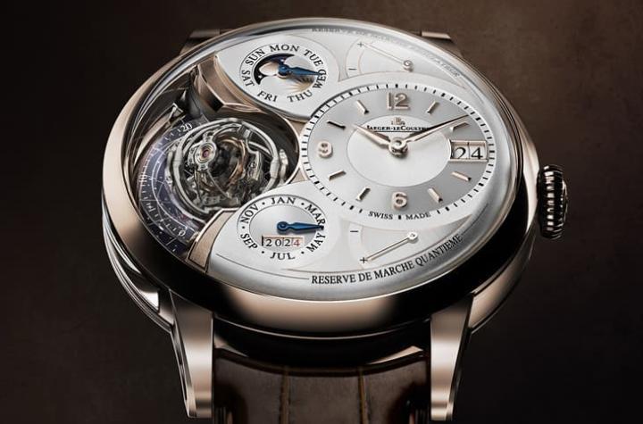 乍看双翼三轴陀飞轮万年历会想起几年前此系列中的双轴陀飞轮,因为积家的设计逻辑大致就是在面盘右侧放偏心小表盘、左侧则是纳入多轴陀飞轮,然而双翼三轴陀飞轮万年历可是功能复杂度再突破的系列新旗舰,因此它除了和Duometre双轴陀飞轮有着一点似曾相识的味道之外,彼此间的设计还是各有各的精妙与赏玩意义。