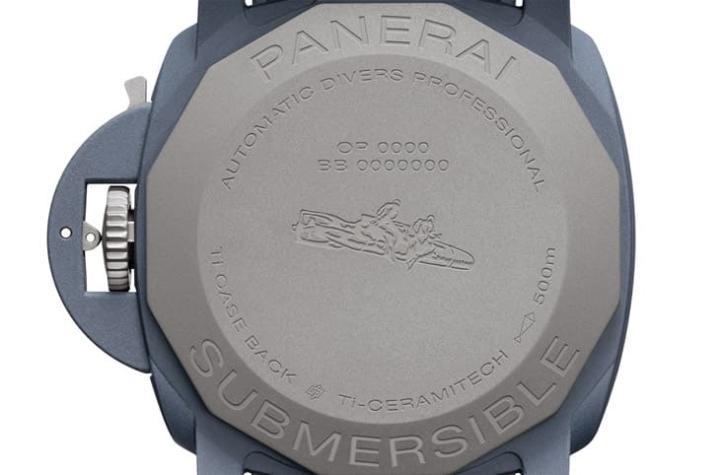PAM01466的表壳零件主要以Ti-Ceramitech™材质制成,不过沛纳海仍针对表圈基座、表冠与护桥的杠杆等零件保留单纯的钛金属元素,因此手表的表圈是在钛金属表面精准嵌入Ti-Ceramitech™,如此一来手表的蓝灰色会因为钛金属零件的区隔产生层次感,看起来更精致也不致沦于单调。值得一提的是,一般Submersible潜水表的防水性能为300米,可是换上先进材质的PAM01466一举将防水能力推进至500米水准,整体的性能让专业人士佩戴时更显游刃有余。