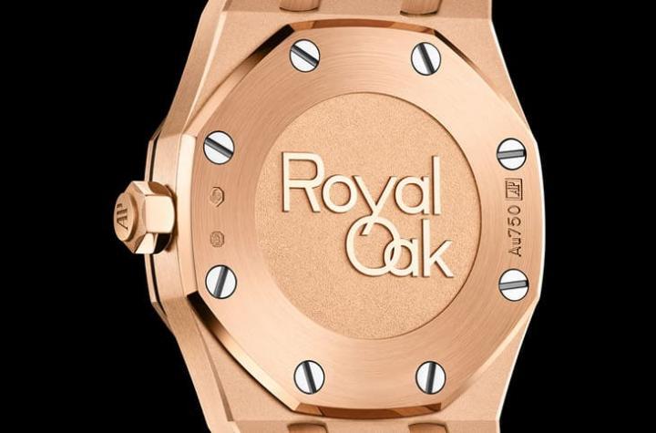 除了霜金工艺之外,皇家橡树迷你霜金石英表外观的其他修饰同样值得细细品味,例如八角形表圈的倒角抛光、表壳和炼带侧面的缎面修饰,至于实底盖也综合了喷砂处理、缎面打磨和抛光等技巧,赋予小巧的手表质感满溢的视觉印象,甚至连接触手表时的触感都很特别。