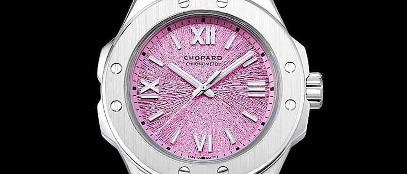 换上粉红色调的Alpine Eagle三针表,大型的41mm款式搭载Chopard 01.01-C自动机芯,其动力储存达60小时,而36mm款式则是搭载Chopard 09.01-C自动机芯,动力储存稍微降低至42小时,不过日常生活使用都绰绰有余,而也这两枚机芯都是获得COSC瑞士天文台认证的作品,代表手表的走时精准度相对更可靠,在手表明艳的外观下,负起手表准确显时的基本使命。