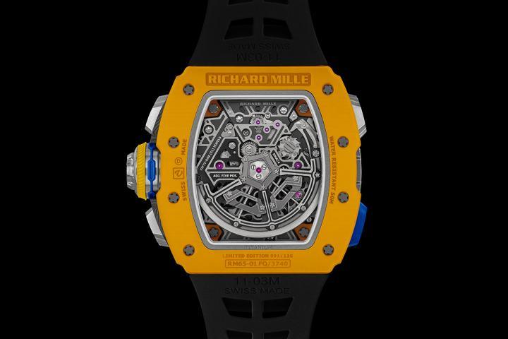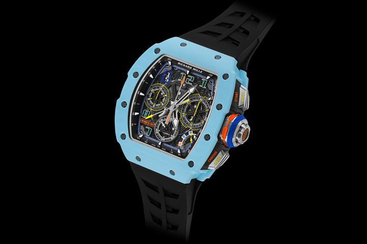 两款RM 65-01自动上炼双秒追针计时码表——深黄Quartz TPT®石英纤维与淡蓝Quartz TPT®石英纤维,诠释整个夏日的绚烂时光,让您在每一刻感官愉悦中铭记难忘的体验。