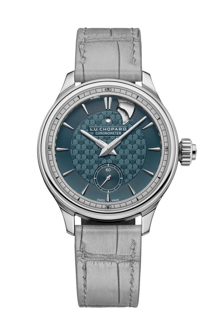 18K白金材质/L.U.C 96.32-L自动上炼机芯/时、分、小秒显示/小自鸣功能/鸣响或静音显示/瑞士天文台认证/日内瓦印记/蓝宝石水晶镜面、透明底盖/表径40mm/限量25只/参考价:¥ 594,520