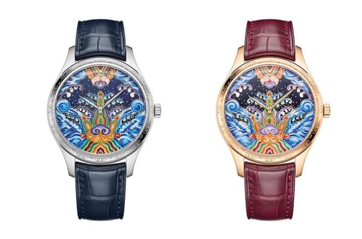 四款Métiers d’Art系列"Tribute to Traditional Symbols"分别采用玫瑰金或白金制作表壳,38mm的尺寸与手表的气质华贵路线不谋而和,四款可以分成两种主题画面,每个主题分别有两种表壳版本,但它们全都是搭载2460机芯,这枚机芯拥有40小时动能,机芯工艺水准获得日内瓦印记认证,特别的是,其22K金自动盘上还额外雕刻上海潮翻涌的装饰纹理,与面盘上精巧装饰互相呼应。
