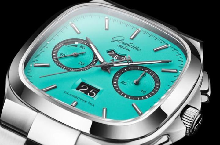 2024年登场的两款七零年代大日期计时码表都以不锈钢材质制作特色方形表壳,其方中带有圆角的设计不仅能减少手表因不经意碰撞产生损伤的机会,也能让整体的视觉印象更流畅俐落,格拉苏蒂原创精心在表圈、表壳以及炼节表面分别饰以抛光和缎面磨砂处理,形塑外放与内敛的视觉层次。两款七零年代大日期计时码表都有不锈钢炼带或是黑色橡胶表带等两种表带类型,无论搭配哪一种表带都可以烘托面盘颜色的明艳缤纷。