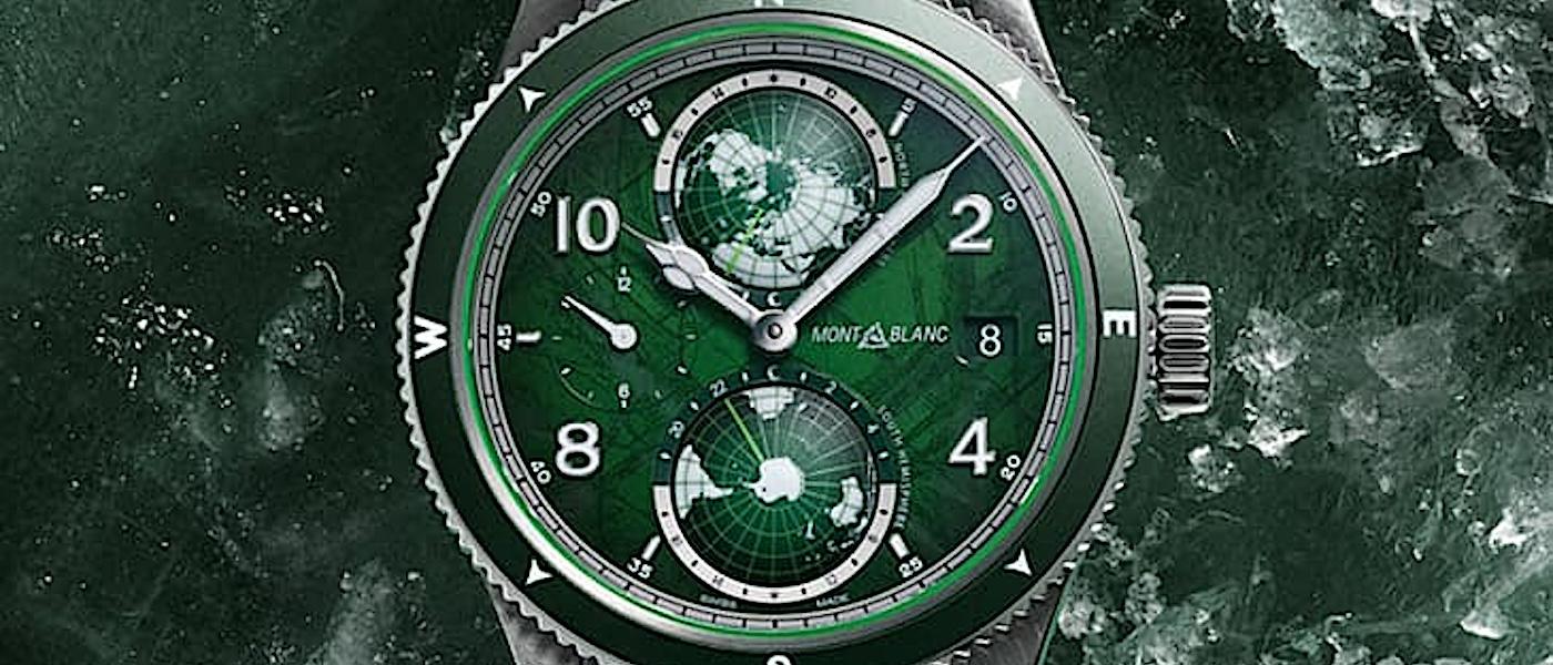 南极洲这种独树一帜的绿色冰山提供万宝龙创作新款1858零氧系列的灵感,要在手表设计上连结绿色冰山说难不难,大致来说就是把面盘换成绿色就可以在大方向交代过去。然而品牌想的不只是把面盘颜色改一改而已,他们是真的想让人看到手表面盘就可以想到亲临南极洲观赏绿色冰山的震撼。