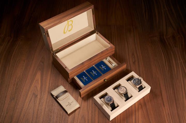 百年灵替三款140周年限量版设计特制的木质表盒,它的空间足以同时容纳三只表(如果一次入手三款手表,一个表盒就能同步收藏三只表),里面还含有一个抽屉以及可拆卸的旅行表袋。除了表盒很有质感也很有诚意之外,品牌还会赠送表主一本《百年灵:140 Years in 140 Stories》精装书籍,书籍的封面分别就是三款百年灵140周年限量版,内容的大意就是让表主更加了解品牌的历史与传承,以及他们的工艺精华,与手表搭配在一起,俨然如同品牌140年历史的精彩缩影。