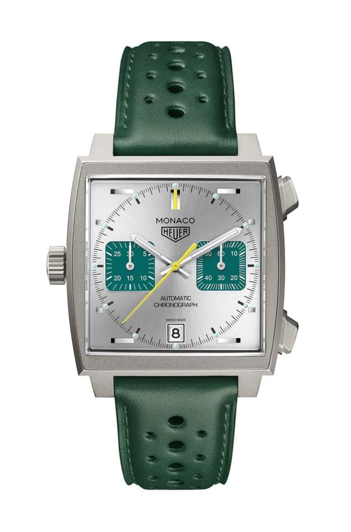 Monaco计时码表至今已有55个年头,泰格豪雅不断尝试替这款经典名作融入新材质、科技与设计元素,例如2023年品牌就曾推出过赛车蓝限量版,2024年甚至还有前所未见的Monaco双追针计时码表与Monaco镂空计时码表先后亮相替系列周年炒热气氛。相较于前述提到的今年的两款新作,新近登场的Monaco计时码表赛车绿限量版则偏重于展现系列源远流长的历史,品牌透过配色的变化来连结手表与赛车界的深厚渊源。