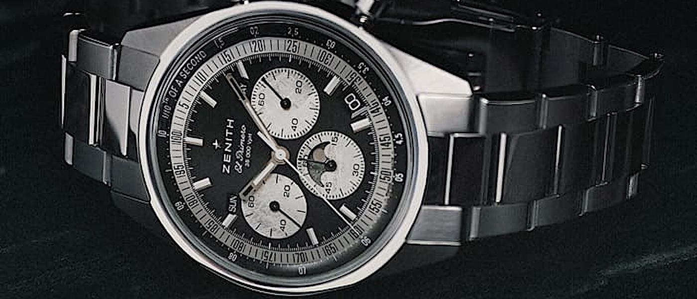 表款以不锈钢制作,搭配黑色面盘,并且有不锈钢链带以及黑色小牛皮表带展现同中求异的风格,Hodinkee和真力时讨论后针对手表细节做出不少调整,例如将镀金计时指针改成白色、时标采镀铑处理、月相盘也以黑色呈现——黑色月相过去在Chronomaster Original全日历月相计时码表几乎闻所未闻,刚好和面盘整体的颜色连成一气。