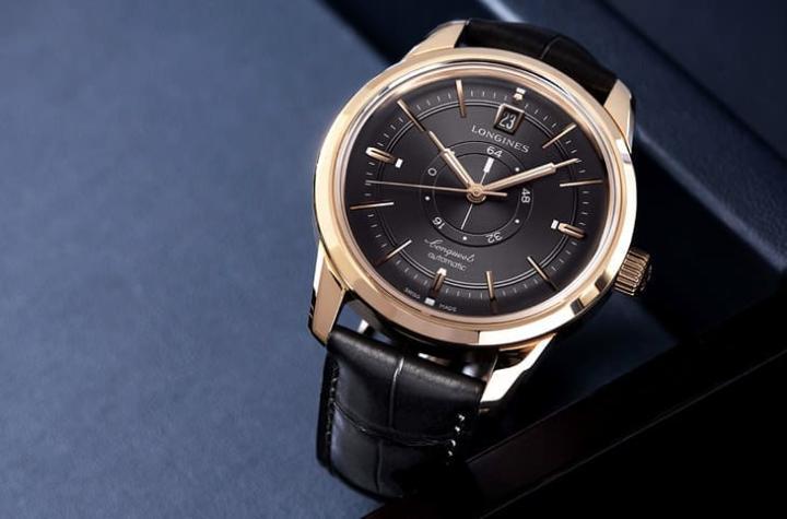 浪琴表重新诠释Conquest系列Ref. 9028推出的Conquest Heritage中央动力储存指示手表18K黄金或玫瑰金限量版本,主要特色仍旧是面盘中央由两枚旋转圆盘呈现动力消长状态,向经典古董表的设计致敬。这种将动力储存指示设置在中央转动圆盘的设计为浪琴表独家发明,其中央内圈圆盘上的棍形指标搭配中央外侧转盘可指示机芯动力的消耗程度(从64~0小时)。每当佩戴者转动表冠或靠手腕动作为手表上链时,中央外侧旋转圆盘便会随之转动,代表手表动力获得补充。因此手表面盘的两枚转盘会持续变化,营造一种原创、时光流动的诗意。