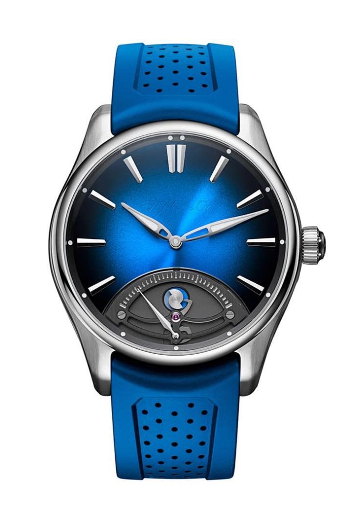 不锈钢材质/HMC 250自动上链机芯/时、分、逆跳小秒显示/蓝宝石水晶镜面、透明底盖/防水120米/表径42.8mm/参考价:¥ 172,620