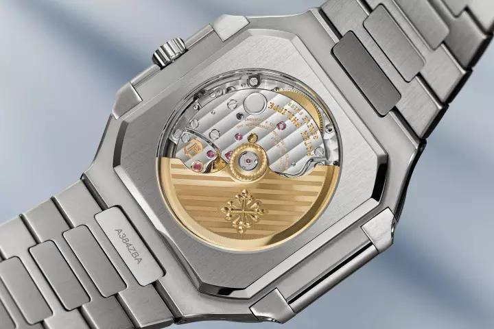 为凸显全新 Cubitus 系列的鲜明风格与运动气息,百达翡丽专门为表盘添饰水平横纹浮雕图案,营造细腻的光影变幻。此纹样为 Cubitus 系列表款的鲜明标志,同时映现于百达翡丽机芯的自动盘及迷你自动盘之上,与百达翡丽标志性的 Calatrava 十字星图案相映成趣。