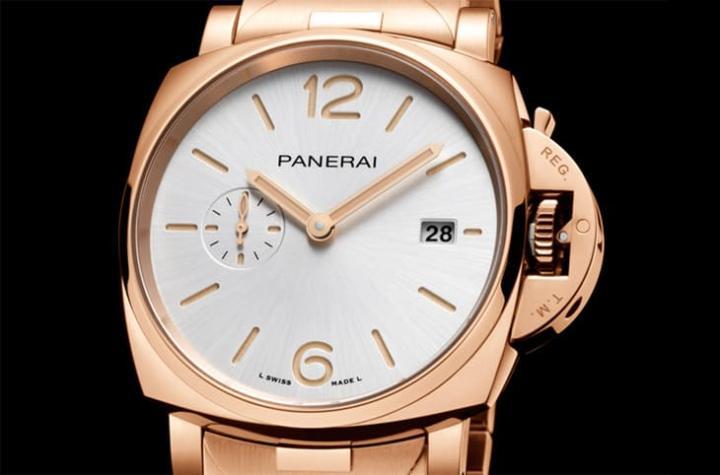 Luminor Due系列另有两款Goldtech™红金款式,分别是Luminor Due TuttoOro PAM01494与PAM01442,它们的表径都是42mm,从表壳、表圈到链带全以Goldtech™红金制成。PAM01494的面盘是白色太阳放射纹配米白色夜光涂料,PAM01442又换成黑色太阳放射纹配白色夜光涂料,有别于前面提到的三只不锈钢Luminor Due一律采用实底盖,贵金属款式的Luminor Due链带表则拥有透明底盖设计,让人可以好好欣赏手表内部的P.900自动机芯。