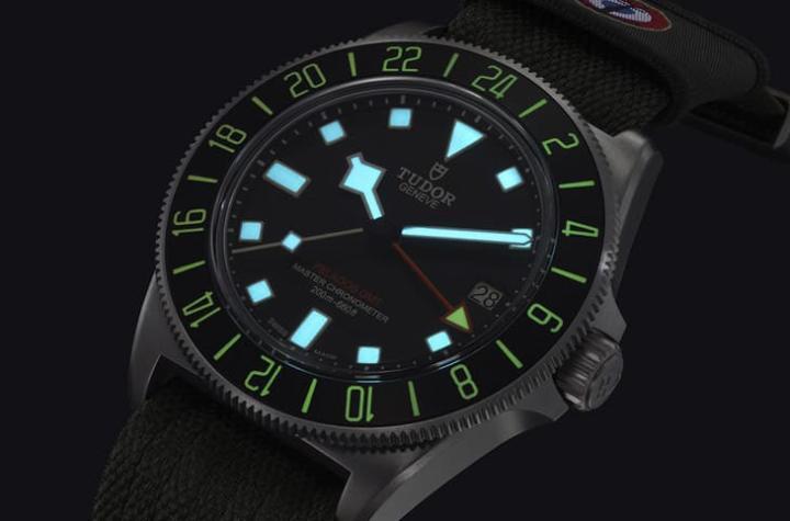 得力于帝舵讲究的设计,Pelagos FXD GMT不仅能显示两个时区的时间,透过转动设定表圈刻度以及24小时指针,手表就能延伸出第三地时间显示,通常我们会称之为“Zulu time祖鲁时间”,即协调世界时(UTC)的军事名称,亦是所有飞行员的标准参考时间,"Zulu"一词是航空界的标准化音标字母代码,代表"Z"或"Zero"(零)的第一个字母。