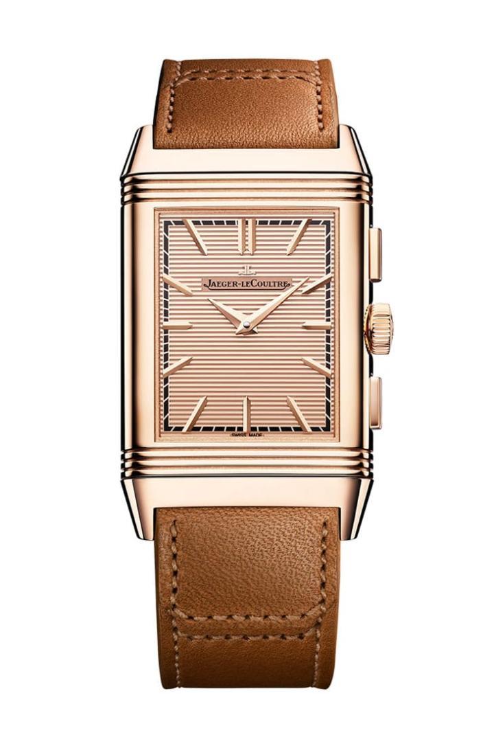 Reverso Tribute Chronograph可以追溯到积家1996年开发的翻转系列计时码表,表款将原本一体式的计时机芯引入全新结构,让计时功能可以顺着Reverso两面翻转的特色,呈现出走时与计时的独立画面。表款一如文章前面所提到的,用玫瑰金材质打造多数外部零件,而也因为它多了需要靠手指启动的复杂功能,因此表壳也增加了计时按把便于操作。积家替其配置棕色小牛皮表带,而且表带供应商还是阿根廷知名马球靴制造商Casa Fagliano,他们位在布宜诺斯艾利斯工坊精心制作,赋予Reverso Tribute手表更为优异的质感,同时又与系列诞生的马球渊源可以连上线。
