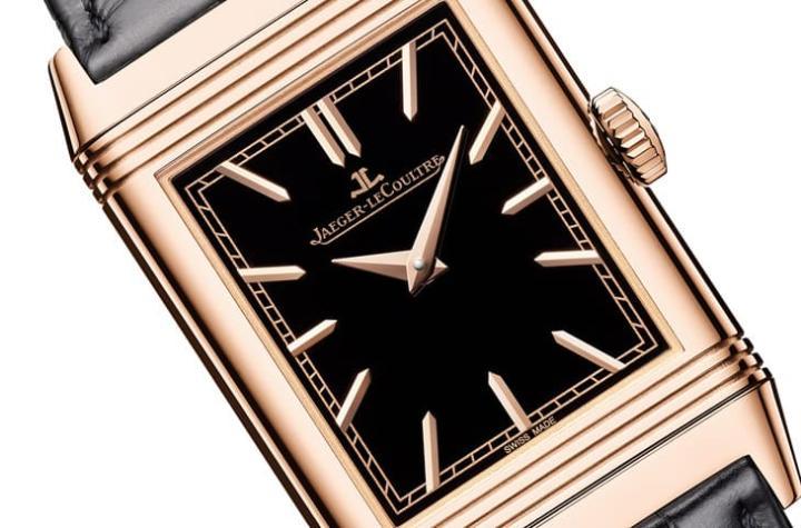 Reverso翻转蛇年生肖表与前两款作品的基调一致,包括玫瑰金表壳、45.5x27.4mm表径,以及黑色鳄鱼皮表带,功能也是力求简约的二针显示,手表正面为黑色大明火珐琅,搭配轨道式分钟刻度、玫瑰金色立体镶贴时标与太子妃式指针等,对比强烈同时又散发一股雍容感,与腕表外观的配色也连成一气,视觉效果相当高雅大方。