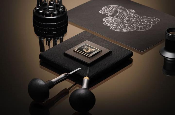 与一般翻转系列基本款不同的是,Reverso翻转蛇年生肖表是一款你会更想要翻到表壳背面的少数特例,表壳背面的玫瑰金材质以大片黑色大明火珐琅覆盖,由此突显画面中主角——灵蛇图案,积家旗下的雕刻师运用名为模雕(Modelled Engraving)的工艺,将灵蛇图案的立体感刻画到位,然而一般模雕通常都是在金属表面迳行雕刻,Reverso翻转蛇年生肖表却是先涂好、烧制出黑色大明火珐琅后才由雕刻师下刀,因此制作过程必需更小心谨慎,以免破坏得之不易的珐琅涂层,根据积家透露,要完成Reverso翻转蛇年生肖表的图案,雕刻师需用上10种不同大小的凿刀一刀一刀刻凿,耗费至少80个工时才能完成。