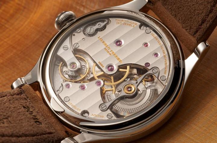 Classic Auto Sandstone搭载他们家第二款自动日期机芯LF270.01,这款机芯以铂金材质制作微型自动盘并配有单向滚珠轴承,有助于提升抗震效果,近一步确保理想的稳定性和最大化的上链效能,机芯核心采用瑞士杠杆擒纵系统,其悠久周全的设计是手表精准走时的后盾,这枚机芯能储存3日动能,出色的日用佩戴性呼应LAURENT FERRIER打造优质手表的创作初衷。
