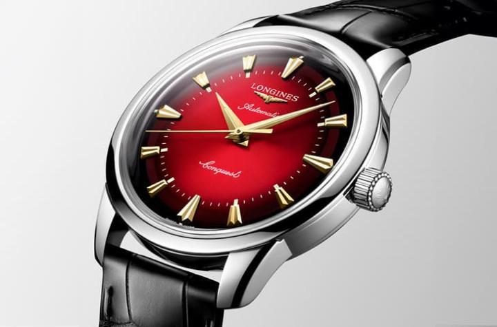 表款采用不锈钢制作40mm的表壳,搭配皮革表带无论日常佩戴还是特殊场合,均能展现其独特的优雅风格。不锈钢表壳的外观简洁且现代,为手表正面与背面的独特蛇年元素铺陈绝佳舞台。手表选用了渐层红色的面盘,其呼应了中国传统的吉祥色——红色,也是农历新年期间象征喜庆和祝福的招牌颜色。渐层红色从面盘中央向外逐渐过渡,既具有视觉上的深度感,也营造出一种热烈和欢快的节日氛围。面盘上尚有亮金色调的镀金指针与时标,红金配色让整只表散发出优雅光泽,甚至增添了一份奢华感。