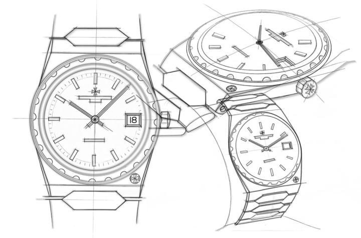 回顾222手表在1977年刚发表时,它还随附一枚造型呼应表圈凹槽设计的钞票夹,那时候的222手表别有尺寸为37mm的"Jumbo"二针款、34mm的三针款,以及24mm搭载石英机芯的女表款式,各种款式分别有不锈钢、黄金、白金或金钢双色材质版本,其中有些贵金属款式的表圈或链带还有镶钻的奢华风格设计。