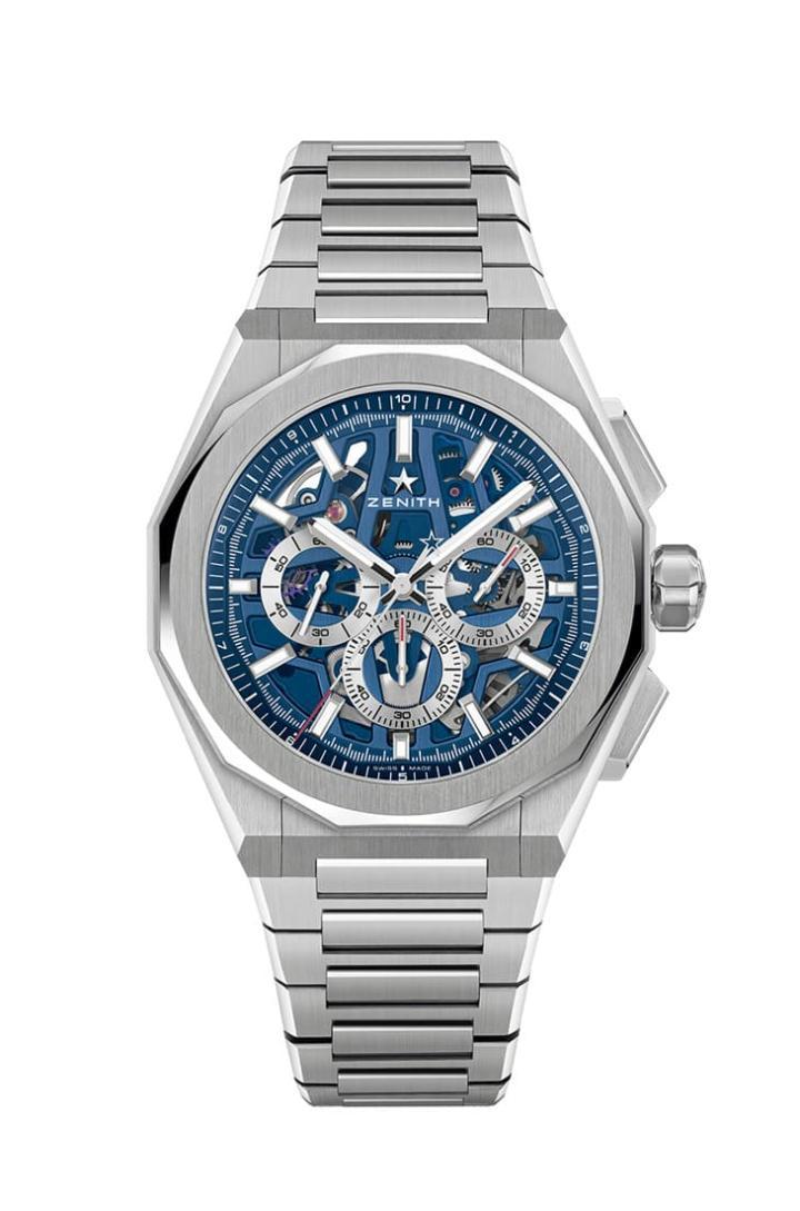DEFY Skyline身为DEFY的子系列,最大特色莫过于刚毅多切面的表壳造型,以及一体成型的整合式链带,自从问世后这系列已经扩展出可观的阵容,从三针、潜水表、计时码表、陀飞轮,以及镂空小三针应有尽有,2025年ZENITH继续发扬镂空工艺的奥妙,甚至将之应用在他们家招牌的El Primero高震频计时机芯上。