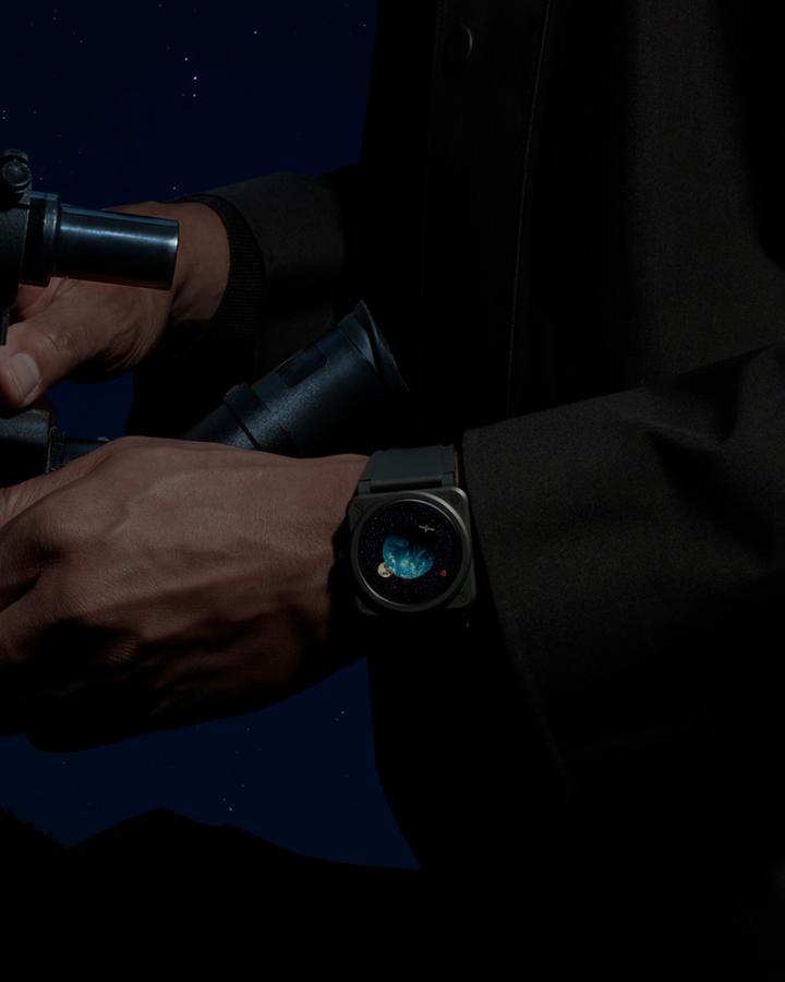 Bell & Ross创意总监兼联合创办人Bruno Belamich解释说:“这表款的灵感来自国际太空站的穹顶舱,后者像观测行星的窗口。我想像在太空看到地球与月球和火星像连成一线,这表款特色在于充满想像力的显示方式,并非时计技术新发展。”