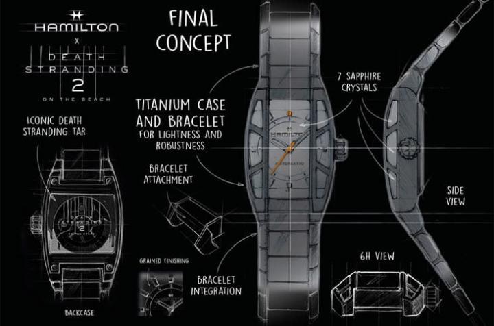 小岛秀夫表示,他非常荣幸能与汉米尔顿合作,为《死亡搁浅2》打造专属手表。他认为如同《2001太空漫游》一般,《死亡搁浅2》也描绘了比制作年代更长远的未来,因此与拥有丰富电影合作经验的汉米尔顿合作,是创造未来产品的最佳选择。新川洋司亦透露,这款手表的设计开发耗时两年多,期间甚至与游戏制作同步进行,为求让手表融入游戏世界观,又能成为实用的时计产品,小岛制作与汉米尔顿的设计师经过多次讨论和尝试,最终才得以完成。